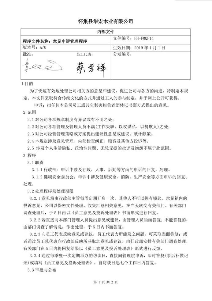 意见申诉管理程序