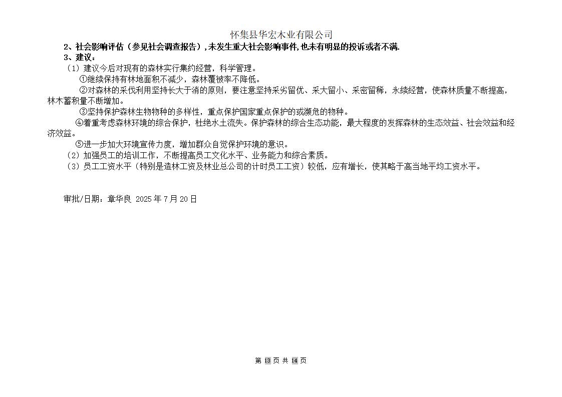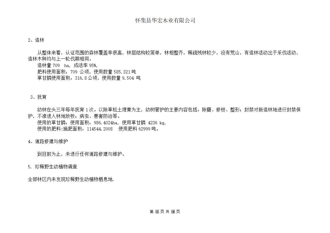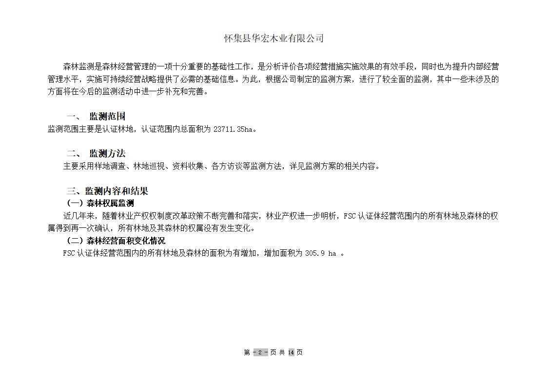 华宏森林经营活动监测报告