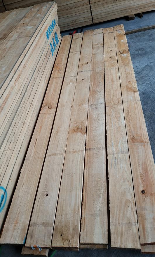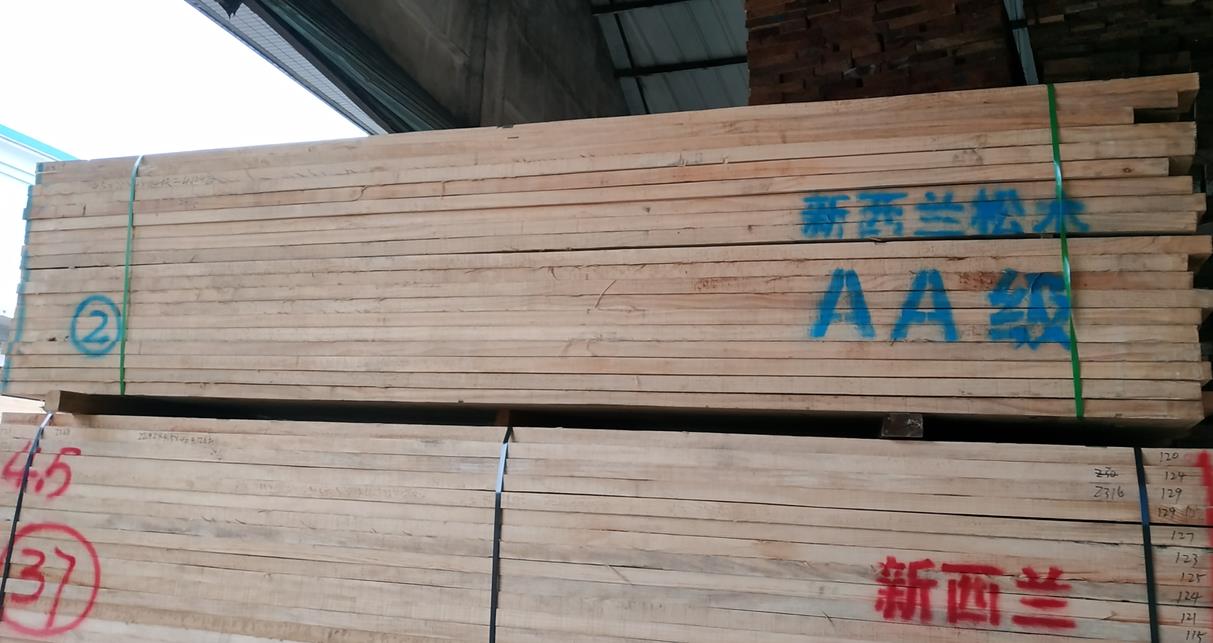 其外皮为灰褐色,内皮为红棕色,树皮较厚。原木轮生节多。心、边材区别明显。心材为黄色略带红色;边材为白色至浅黄色。年轮明显。心部年轮宽,晚材率低;其它部分年轮狭,晚材率高。树干顶部和接近心部的木材,常现螺旋纹理;其它部分为直纹理。木材的特点与我国油松和樟子松接近。木材较轻软,干燥容易,性能较好。木材不耐腐,且易受白蚁危害;强度为中等,易切削加工;钉着力好,但钉钉时易劈裂,油漆、胶合效果良好。木材的绝热、保温、隔音性能良好;脱脂力强,纤维长。辐射松可作建筑、家具、包装、胶合板、刨花板、纤维板、木片、造纸、火柴、箱板等的用材。