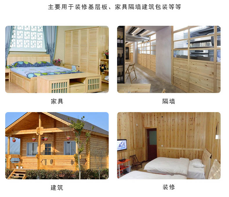 辐射松通体笔直,纹理细密,具有色泽亮丽,纹理清晰,保温透气,防腐防蛀等特点。辐射松以其卓越的加工性能,美丽的木材纹理,被广泛地运用于建筑、户外防腐等领域。 主要用途:家具、画框、门线条,木工制品、酒盒、实木礼品盒、人造板、包装材、建筑材料等。