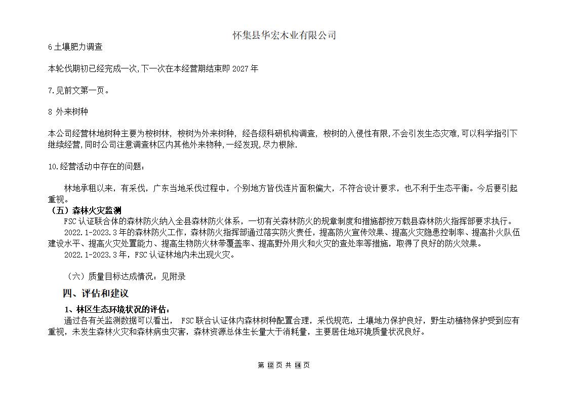 华宏森林经营活动监测报告